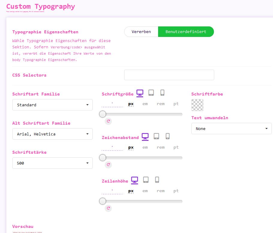Spielen Sie mit mehr als 998 Google Fonts, die in den Abschnitt Typography integriert sind.